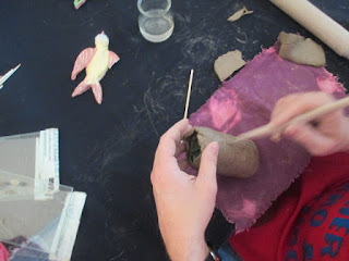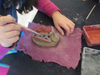 Um dia a criar caras de coelhos para transforma-los em íman...crianças dos 3-5 anos , com muita vontade de mexer no barro, criar e não podia faltar os pincéis para pintar :)