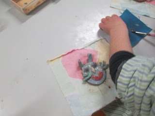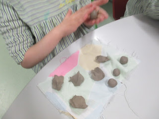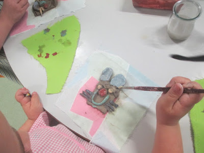Um dia a criar caras de coelhos para transforma-los em íman...crianças dos 3-5 anos , com muita vontade de mexer no barro, criar e não podia faltar os pincéis para pintar :)