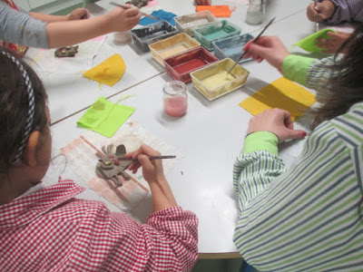 Temos o privilégio de ter a nossa atividade em diversas escolas, para moldar e pintar. A imaginação mão tem limite, os pincéis velhos conhecidos e o barro...novo ou mudado.