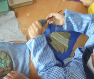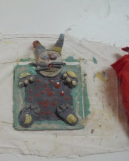 Desafiamos aos alunos a criar um azulejo padrão no máximo  5 linhas...um resultado diverso e criativo . Antes da mufla ...