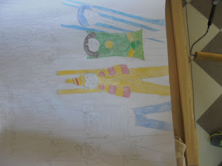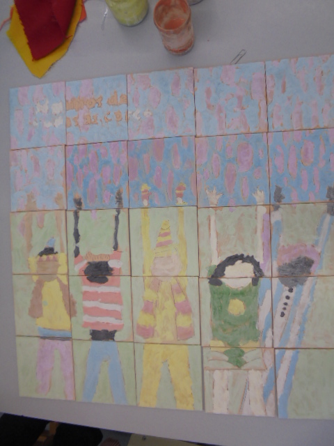 Um livro que se transforma em um painel...incentivar a leitura e a pintura de azulejo:), com meninos da pré-escola.