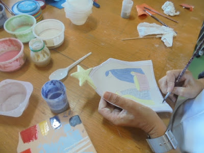 Continuamos com a nossas aulas no Palácio de cristal...pintura com vidrados, barro...e ideias!!!